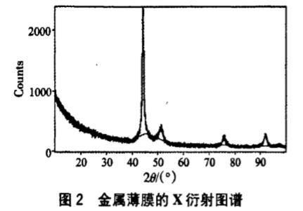 通過分析表明,采用真空沉積磁控濺射技術制備PVD薄膜,所得XRD譜線呈現寬化,這是受PVD薄膜制備條件所限而較難避免出現的現象。磁控濺射法制備的PVD薄膜存在晶格缺陷,它直接影響PVD薄膜材料的性能,使其在使用過程中會出現性能不穩定的情況。因此,要想獲得高質量的PVD薄膜,在薄膜制備完成之后,還需對其進行消除缺陷的處理,如退火處理、熱穩定性處理等,以獲得性能穩定的PVD薄膜材料。