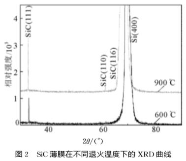 XRD結果表明隨著退火溫度的升高,SiC薄膜的結晶質量變好。