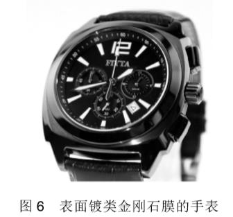 2)關鍵零部件在縫紉機配件旋梳上鍍DLC膜替代原來的電鍍硬鉻,不但避免了污染環境,而且明顯提高了工件表面的硬度及耐磨性,使用壽命提高10倍以上。同時,因表面膜層摩擦系數降低,機器運行過程中產生的噪音減小、斷線減少。另外,DLC膜還應用于超低溫制冷機活塞、空調器壓縮機滑片、內燃機用活塞桿、腐蝕性強環境中的零部件(如耐酸泵)、金屬基人工關節、軸及軸承、鐘表用齒輪和外觀件等。圖6為廣州有色金屬研究院與深圳市飛亞達(集團)股份有限公司共同研制的表面鍍類金剛石膜的手表。
