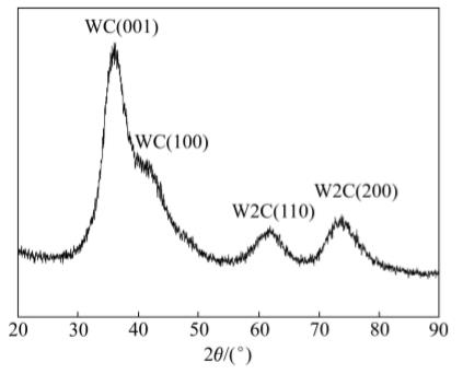 圖10所示為DLC/WC膜層的XRD譜。經(jīng)分析,在WC(001)、WC(100)、W2C(110)、W2C(200)等位置出現(xiàn)了較寬的衍射峰,這主要是膜層中既存非晶結(jié)構(gòu)的C層;同時,還存在金屬W與C結(jié)合形成WC和W2C等相結(jié)構(gòu),多相疊加并且所形成的WC和W2C晶粒非常細小,這些都使衍射峰寬化。