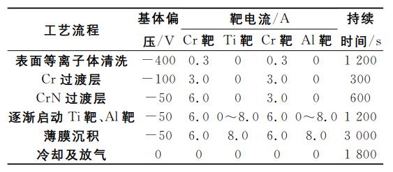 表1 CrTiAlN薄膜的制備工藝參數(shù)