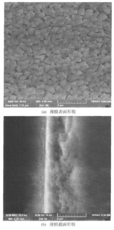 圖1 CrTiAlN薄膜的SEM 表面和截面形貌