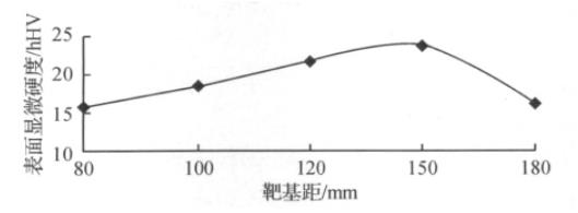 圖3 薄膜表面顯微硬度與靶/基距的關(guān)系