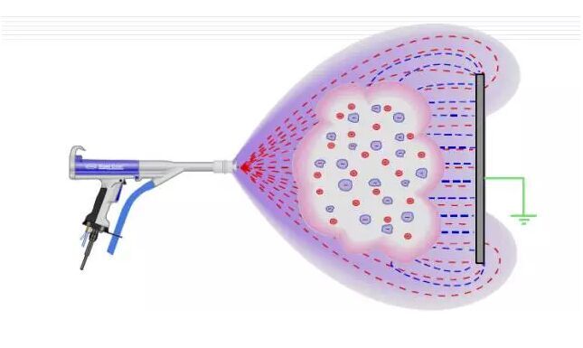 粉末噴涂:是用噴粉設(shè)備(靜電噴塑機(jī))把粉末涂料噴涂到工件的表面,在靜電作用下,粉末會均勻的吸附于工件表面,形成粉狀的涂層;粉狀涂層經(jīng)過高溫烘烤流平固化,變成效果各異(粉末涂料的不同種類效果)的最終涂層。