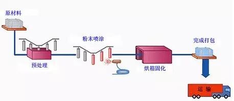 上件→靜電除塵→噴涂→低溫流平→烘烤