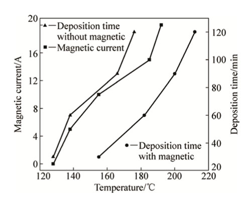 Fig.1Relationshipsbetweentemperatureandmagneticcurrentanddepositiontime