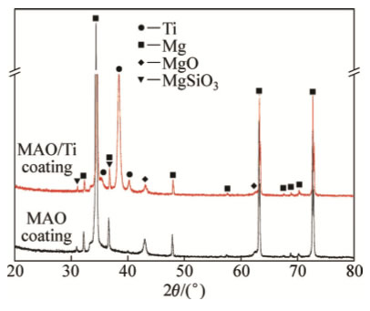 Fig.6XRDpatternsofMAOcoatingandMAO/Ticoatingspreparedwithoutmagneticfor120min